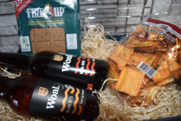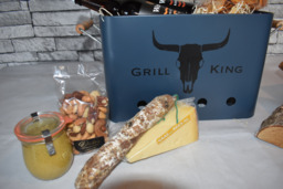 complete bbq met daarbij aanmaakblokjes, stuk pikant belegen kaas, franse droge worst, vers gebrande noten, boerenmosterd, 2 streekbiertjes en toast.