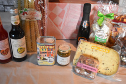 deze doos is royaal gevuld met Italiaanse producten: luxe past, echte parmaham, 2 pure sappen, prosecco, tapenade, olijfolie, kruidenkaas, fruitcarré, amarettikoekjes in chocolade, toast, nogat.